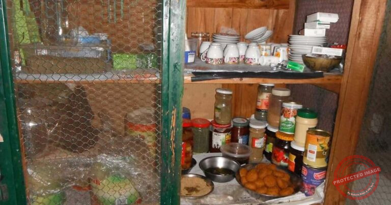القسم العلوي يحتوي على ثلاث رفوف يُغطى من الخارج ببابين يفتحان إلى الجوانب.
