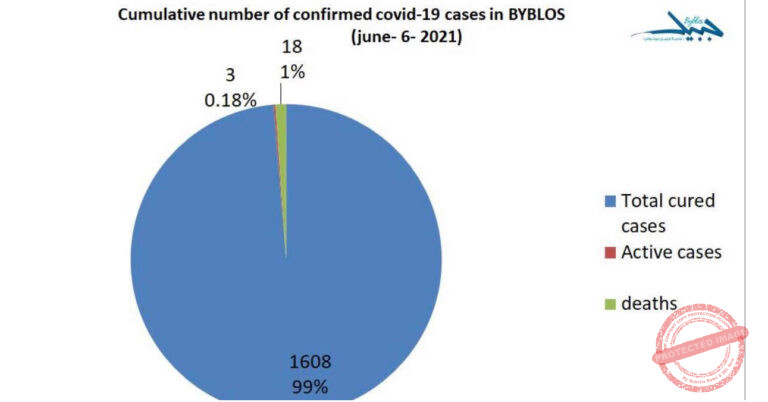سجلّت مدينة جبيل منذ بداية انتشار فيروس كورونا لغاية تاريخ ٦ حزيران ٢٠٢١، ١٦٢٩حالة ايجابية، ١٨ منها حالات وفاة، ١٦٠٨ منها شفاء تام، و٣ شخص لا تزال حالتهم ايجابيّة.