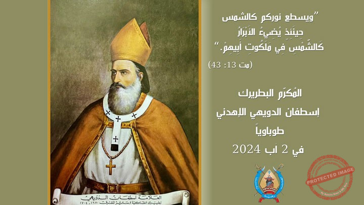 بفرح كبير، نزفّ إلى اللّبنانيين عامّةً وإلى أبناء كنيستنا المارونيّة في لبنان وبلاد الإنتشار، خبر موافقة قداسة البابا فرنسيس على إعلان تطويب المكرّم اسطفان الدّويهي الإهدنيّ (1630-1704). وستقرع أجراس كنائس الرّعيّة فرحًا وابتهاجًا بهذا الإعلان عند السّاعة الخامسة والنّصف من بعد ظهر اليوم على أن يكون قدّاس التّطويب في 2 آب 2024.