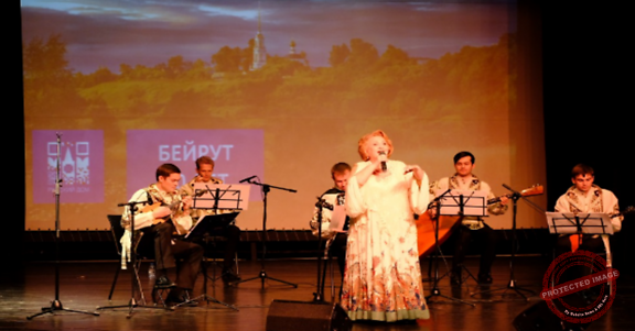 تخلل الحفل أمسية موسيقية للفرقة الروسية الشعبية الاكاديمية “ليو دميلا زيكينا”، وغناء منفرد للفنانة الروسية الشعبية “ناديجدا كريجينا”.