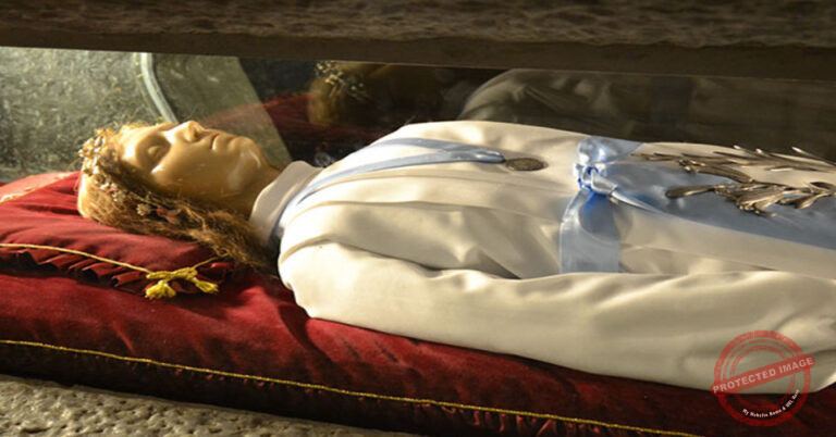 ولدت ماريا غوريتّي في إيطاليا، بالقرب من مدينة “كورينالدو” في 16 ت1 1890. وتعمّدت في اليوم التّالي وكُرّست للعذراء مريم الطاهرة.
