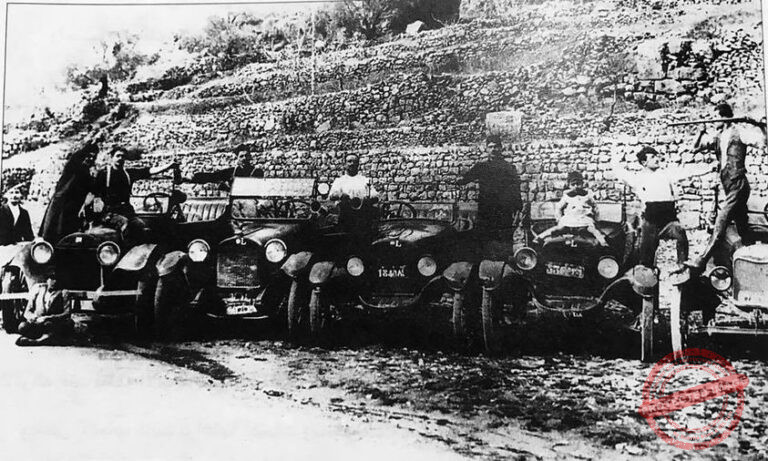 صورة تاريخية أُخِذَت في سنة1923 بأحدث آلة تصوير في ذلك الحين ، للمُصَوِّر الفوتوغرافي السيِّد سليم زعيتر ( سليم زعيتر مُصَوِّر شمس دير القمر ) . تُمَثِّل هذه الصُّورة عَرض السيارات القديمة وأصحابها في الساحة قرب مُنتَزه المنشية في دير القمر ويظهر من اليمين إلى اليسار السّادة الكِرام : جان النجار ، جان عطيه ، جوزف علَّام ( الطفل ) ، توفيق رنو ، نجيب رنو ، أسعد الهنود ، فضلو شكري ، ( وجَدّي ) مسعود بيطار نعمه ( أبوهاني ) ، وديع العتر ، وطنوس نوفل . السيارات من اليمين إلى اليسار : فورد بودعسة ، أوڤِرلَند ، دودج ، بويك ، ومرسيدس .