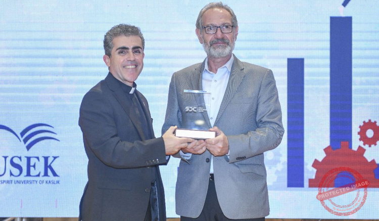 وفي نهاية حفل اطلاق المركز، قدم رئيس جامعة الروح القدس- الكسليك الاب طلال الهاشم درعا تكريمية للنقيب ياسين وللمشاركين في حفل اطلاق المركز.