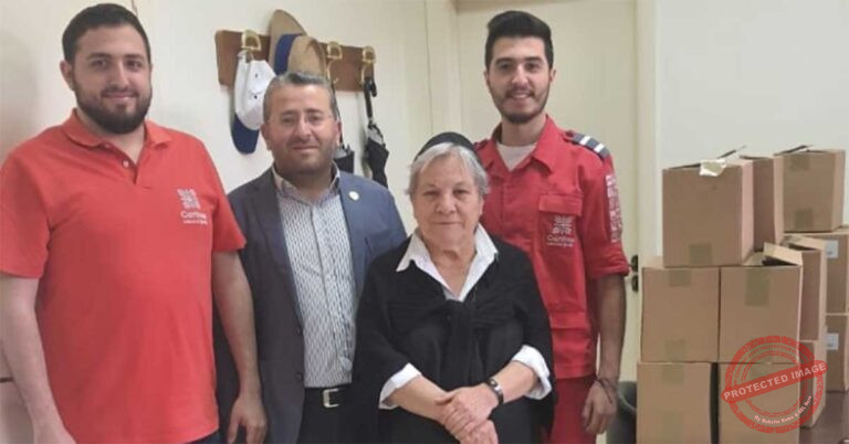 وكان في أستقبال الوفد، رئيسة المدرسة الأخت بازيل الصياح وعدد من الراهبات، وقد سلم الوفد رئيسة المدرسة، ١٥٠٠ كمامة هبة من رابطة كاريتاس.